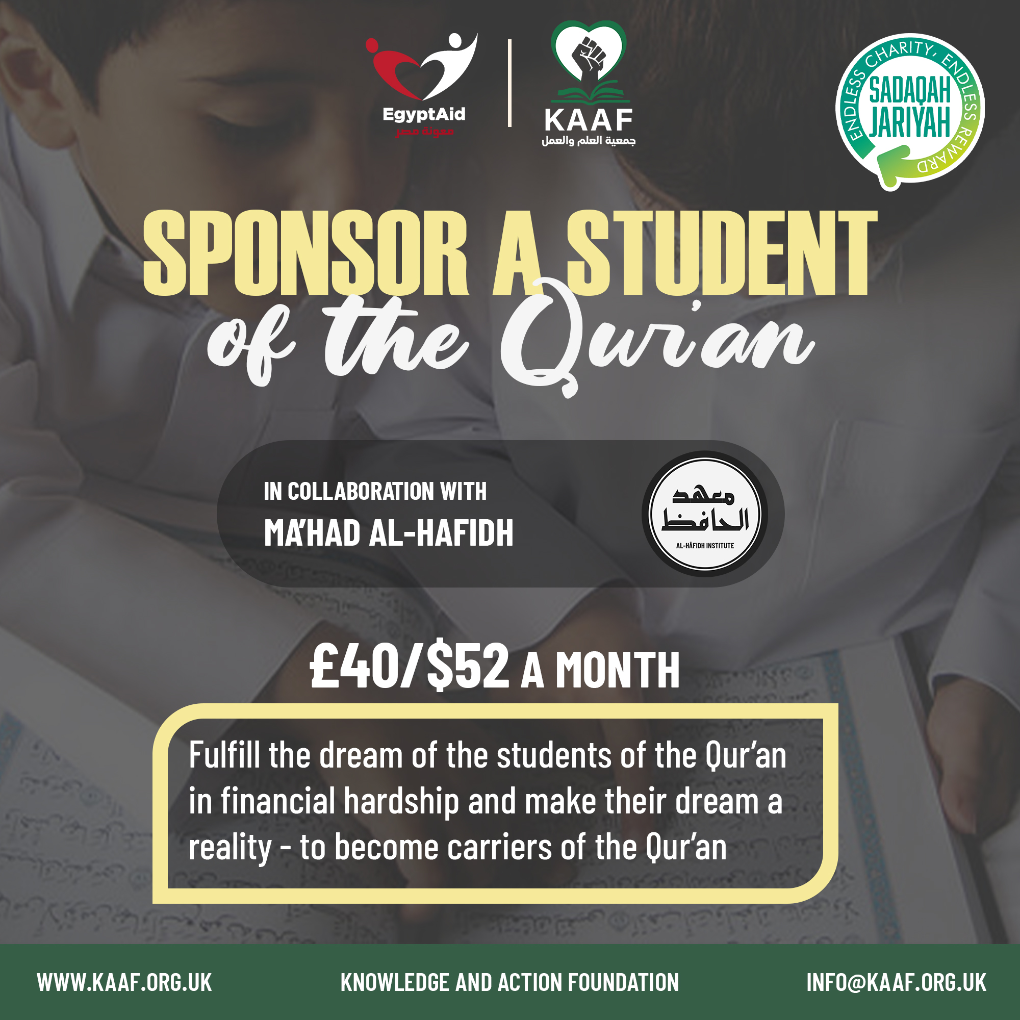 For just a small monthly contribution, you can remove the financial barriers for many poor students in Egypt, allowing them to dedicate themselves fully to memorising the Qur’ān and living by its guidance.